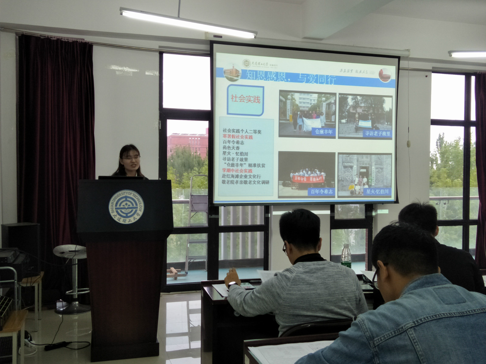 5月10日晚,活动正式开始。参与答辩的同学身着正装,向评委们展示自己在学习和生活等多个方面所取得的优异成绩。同学们向大家展示了自己在校参加过的各种各样的社会实践及勤工助学活动,分享了自己参加活动的感悟与收获。